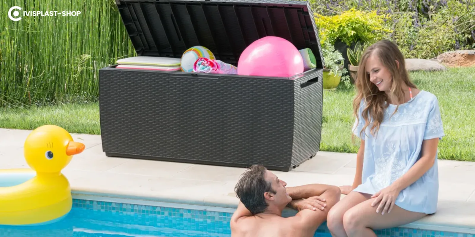 Kültéren (kertben vagy teraszon) kerti tárolókkal vagy ládákkal rendezheted a rendet, de itt már más szempontok a legfontosabbak. A tároló/láda anyaga legyen strapabíró és időjárásálló: a CivisPlast kerti ládái például kiváló minőségű műanyagból készülnek, amelyek védik a tárolt dolgokat a nedvességtől, szennyeződéstől és az UV-sugárzástó. Érdemes a hely igénye szerint választani: ha csak kerti párnákat, kisebb eszközöket (pl. slag, csizmák) kell elhelyezni, egy ~100 literes doboz (pl. a City 113 L-es tárolója) is elegendő lehet. Ugyanakkor kültéri bútorokat vagy több személynyi ülést és tárolást is biztosítani kívánsz, akkor válassz nagyobb kapacitást.