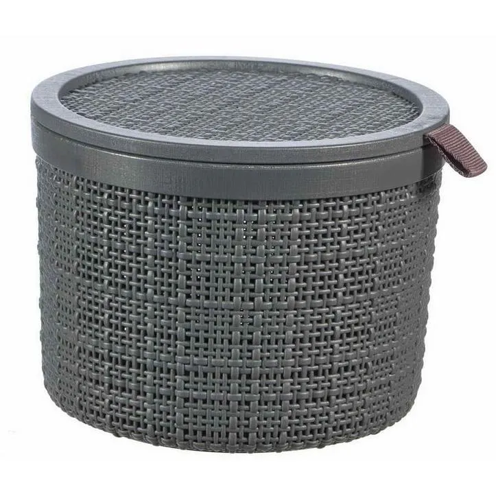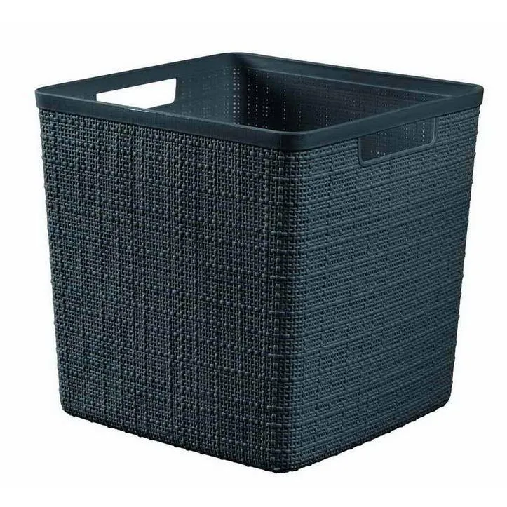 A Jute termékcsalád L-es méretű kosara tökéletes választás mindenki számára, aki praktikus és stílusos otthoni rendszerezőt keres. Ez az esztétikus termék tökéletes megoldás különböző kiegészítők, magazinok, ruhák, vagy játékok tárolására. Az egyedi és különleges textúrája szőtt mintázatot imitál, ezzel kölcsönözve modern és elegáns megjelenést a kosárnak. Ennek köszönhetően a termék bármilyen stílusú belső térhez jó választás. Praktikus fogantyúinak köszönhetően rendkívül egyszerűen mozgatható, valamint a polcról is könnyedén levehető. Ha a kosarak éppen nincsenek használatban, akkor kialakításuknak köszönhetően tökéletesen egymásba tehetők, ezzel sok értékes helyet megtakarítva. A Jute kosarak 100%-ban újrahasznosított műanyagból készülnek, így teljes mértékben környezetbarátak. Anyaga könnyen tisztítható és rendkívül tartós, így éveken át jó szolgálatot fog tenni.