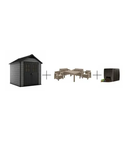 KETER NEWTON 757 MŰANYAG KERTI HÁZ + AJÁNDÉK CORFU FIESTA BÚTOR SZETT ÉS DECO COMPOSTER
