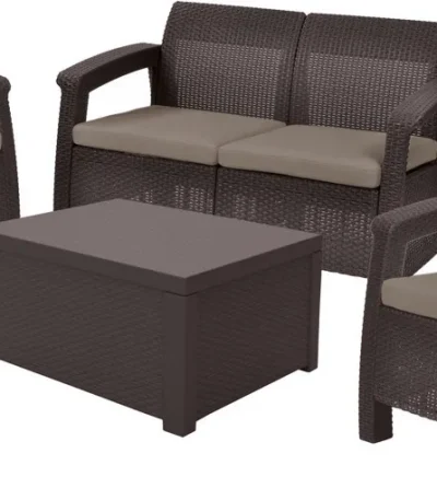 CORFU BOX MŰRATTAN KERTI BÚTOR SZETT TÁROLÓ ASZTALLAL