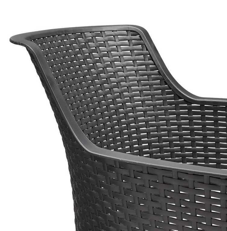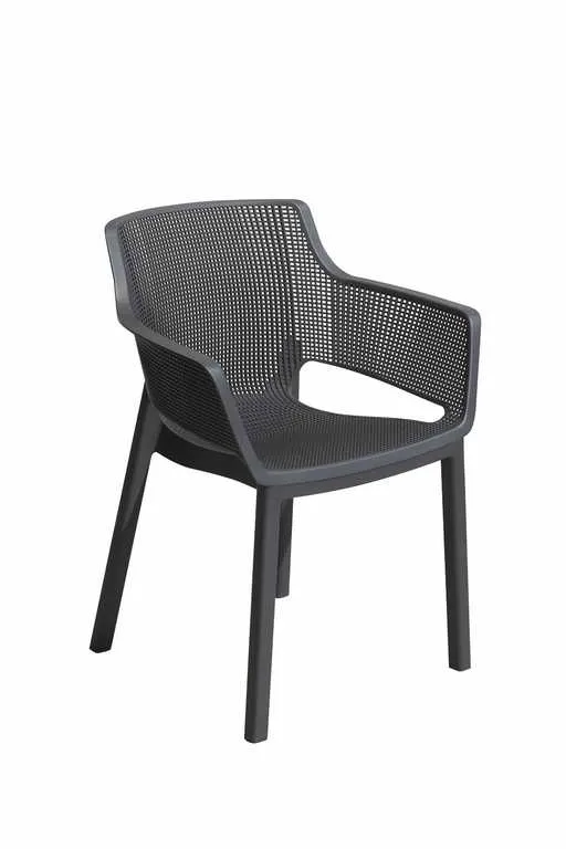 Az Elisa egy kivételesen kényelmes, korszerű külsővel rendelkező szék, amely ideális kültéri és beltéri használatra egyaránt. A profilozott háttámla és ülőrész, valamint a sima, kerekített könyöklő kétségtelen előnyei a terméknek. A fonott rattan inspirálta minta modern hatást kelt, ráadásul könnyedén tisztítható egy mosószeres vízbe áztatott puha törlőkendő segítségével. A gondosan megtervezett forma lehetővé teszi a székek egymásra helyezését, ami segít helyet megtakarítani és könnyebbé teszi a tárolásukat.
