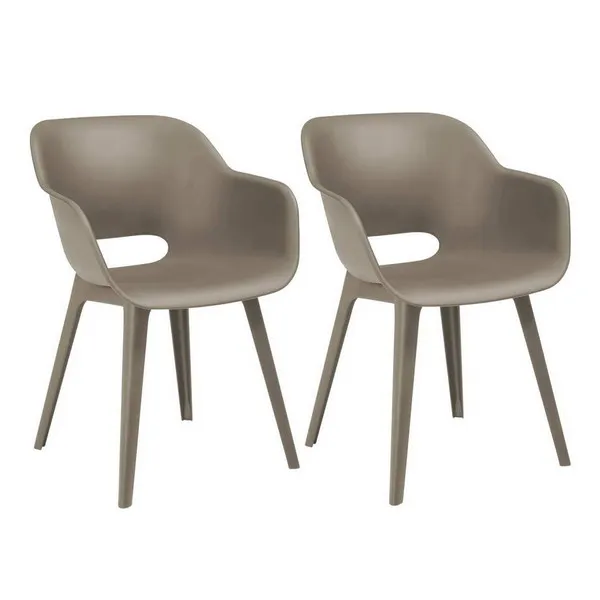 Az Akola székek jellegzetes alakjuknak, lekerekített háttámlájuknak és kartámaszuknak köszönhetően a modern dizájnon kívül a kényelmes használatot biztosítanak. A székeket tartósság jellemzi, ellenállnak a sérüléseknek, az időjárás viszontagságainak és az UV sugárzásnak. Tisztításuk egyszerű, elég hozzá egy mosószeres vízbe áztatott puha törlőkendő. A csomag 2 db Akola széket tartalmaz.