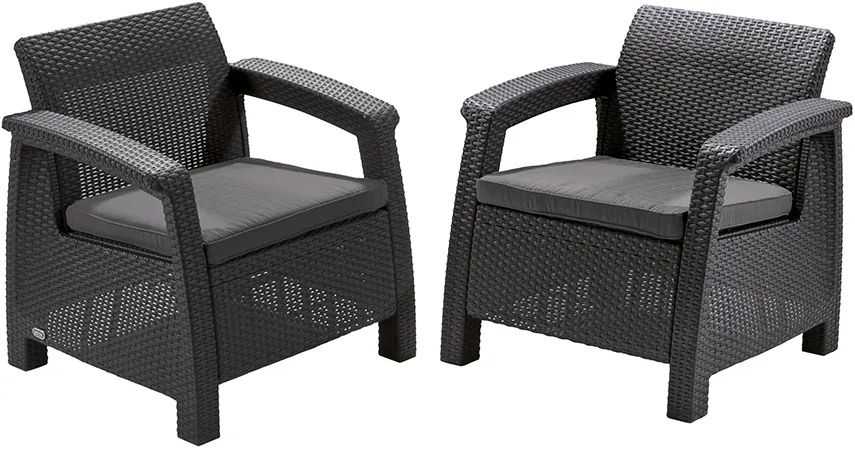 Elegancia és magas minőség dupla kivitelben. Két komfortos fotel puha párnákkal, melyek használhatók kisebb terek komplett berendezésére vagy kiegészítő elemként is. A Corfu Duo tökéletesen passzol a márkavonal kanapéihoz és asztalaihoz. Ennek köszönhetően szabadon módosítható a szett a saját igényektől és az adott tér berendezési lehetőségeitől függően.