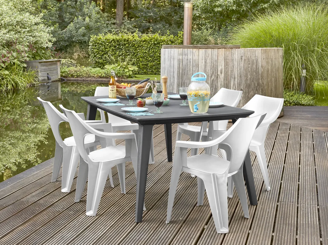A jellegzetes formájú, enyhén lekerekített háttámlával és áramvonalas kartámasszal felszerelt Dante szék a modern dizájn és a kényelem ötvözete. A gondosan megtervezett forma lehetővé teszi a székek egymásra helyezését, ami segít helyet megtakarítani és könnyebbé teszi a tárolásukat. A Dante széket az időjárás viszontagságaival, az UV sugárzással, valamint a sérülésekkel szembeni ellenállás jellemzi. Tisztítása egyszerű, elegendő hozzá csupán egy mosószeres vízbe áztatott puha törlőkendő.