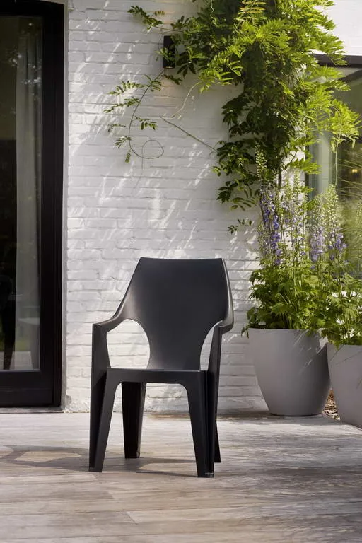 A Dante szék a magas háttámlájával a modern dizájnt és a maximális kényelmet egyesíti. Egy napsütéses napon az enyhén lekerekített háttámla és az áramvonalas kartámaszok abszolút kényelmet és felhőtlen pihenést garantálnak. A gondosan megtervezett forma lehetővé teszi a székek egymásra helyezését, ami segít helyet megtakarítani és könnyebbé teszi a tárolásukat. A szék széles színválasztékban kapható, tisztítása pedig nagyon egyszerű, elegendő hozzá csupán egy mosószeres vízbe áztatott puha törlőkendő.
