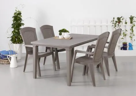 A keskeny formájú Futura asztal mindenki tetszését elnyeri, aki értékeli a stílust és az eleganciát. A termék egyesíti a fából készült asztalok megjelenést a műanyag elemek praktikus felhasználásából eredő előnyökkel. A termék összeszerelése könnyű, tisztítása egyszerű. Az asztal ellenáll a sérüléseknek, valamint az időjárás hosszantartó viszontagságainak is.