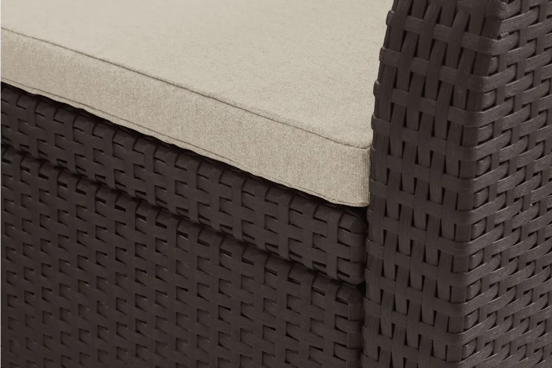 A Georgia rattan hatású bútor szettet két fotel, egy kétszemélyes kanapé és egy négyszögletes asztal alkotja. A bútor szett ideálisan beleillik minden kertbe, ahol ideális helyet teremt a pihenéshez. A termékekhez stílusos, a szetthez passzoló színű puha párnákat mellékelünk. Nagyon egyszerű a tisztításuk. A könnyű és stabil szerkezetű bútorok tisztítása nagyon egyszerű. A szett ellenálló a külső sérülésekkel és az időjárás viszontagságaival, illetve az UV sugárzással szemben is.
