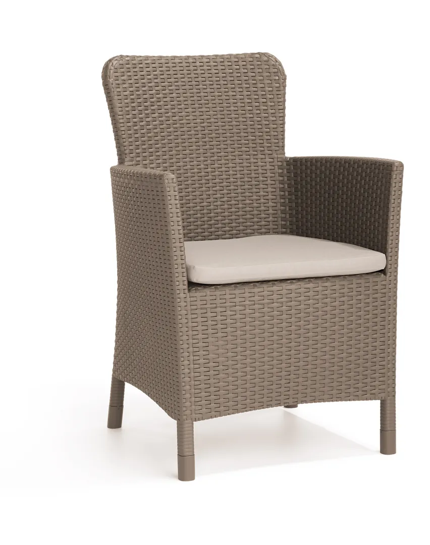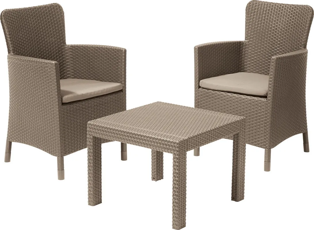 A Salvador egy rattan hatású felülettel rendelkező erkély szett, amely két fotelt és egy négyzet alakú asztalt tartalmaz. A megfelelően profilozott háttámlák és a puha párnák garantálják a kellemes pihenést a szabadban. A bútor szett könnyen tisztítható és ellenáll az időjárás viszontagságainak, valamint az UV sugárzásnak. Klasszikus színválasztékban kapható.