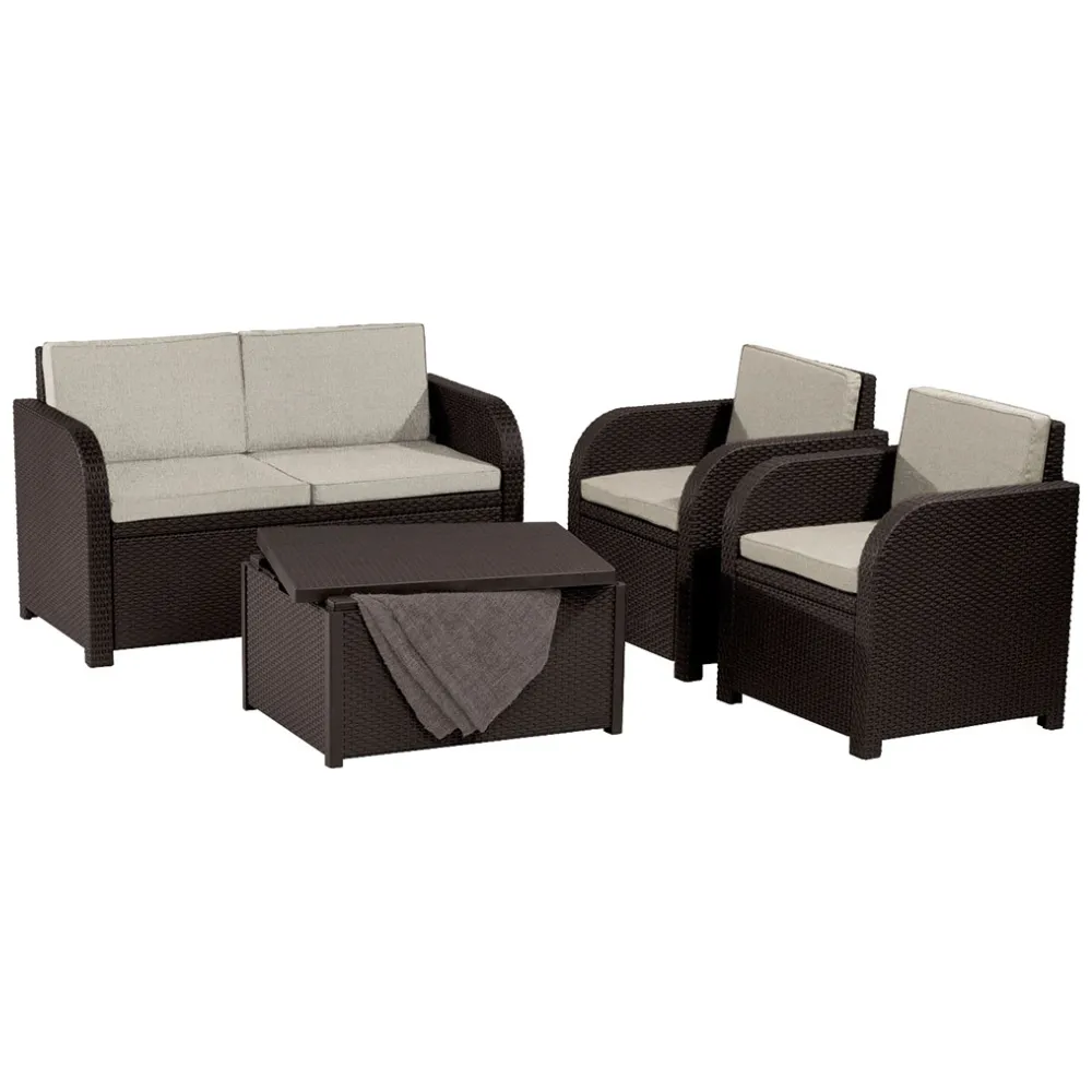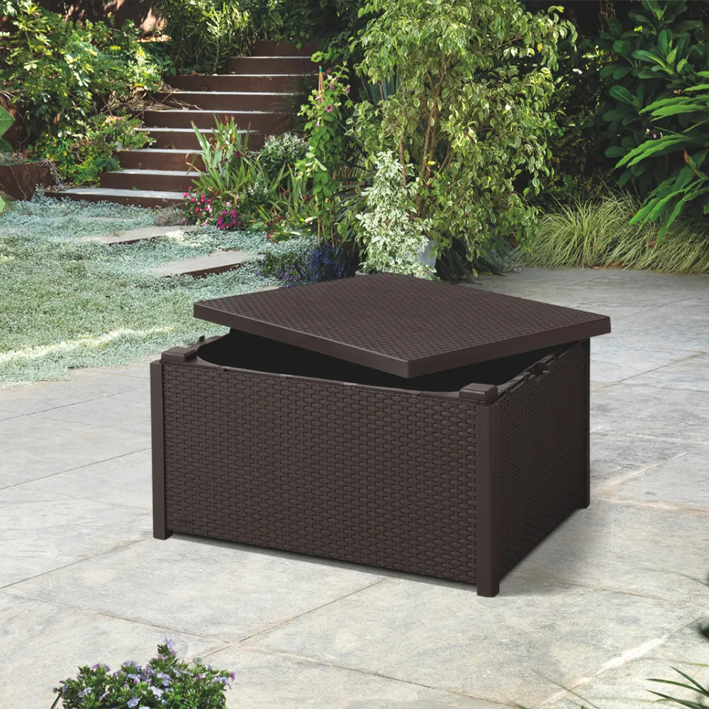 Az Arica tároló asztal tökéletes megoldás minden kertbe. Napközben asztalként funkcionál, a nap végén pedig a teraszon tárolóvá változtatható, amelyben könnyen elhelyezhetők a párnák és a kisebb tartozékok. A tároló biztonságot nyújthat kisebb eszközeinek a nyári esőzésekkor egészen addig, amíg újra nem használja őket. Az asztal mintázata nagyszerűen illeszkedhet a vesszőfonásos mintázatú kerti bútorokhoz.