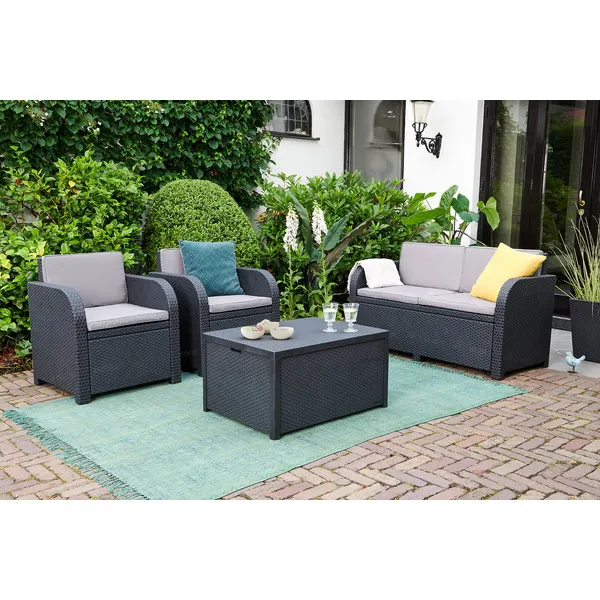 Az Arica tároló asztal tökéletes megoldás minden kertbe. Napközben asztalként funkcionál, a nap végén pedig a teraszon tárolóvá változtatható, amelyben könnyen elhelyezhetők a párnák és a kisebb tartozékok. A tároló biztonságot nyújthat kisebb eszközeinek a nyári esőzésekkor egészen addig, amíg újra nem használja őket. Az asztal mintázata nagyszerűen illeszkedhet a vesszőfonásos mintázatú kerti bútorokhoz.