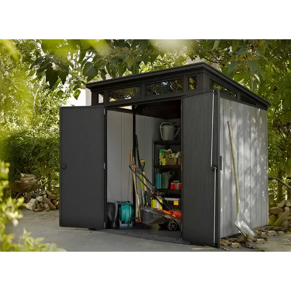 Az ARTISAN 7X7 szerszámos ház tökéletes választás mindazok számára, akik szeretik rendezetten tartani kertjük eszközeit és felszereléseit. Ez a modern és praktikus kerti ház tágas belső teret biztosít, amely ideális barkács asztal, sportfelszerelések, kerti gépek, vagy akár nagyobb tárgyak tárolására is.