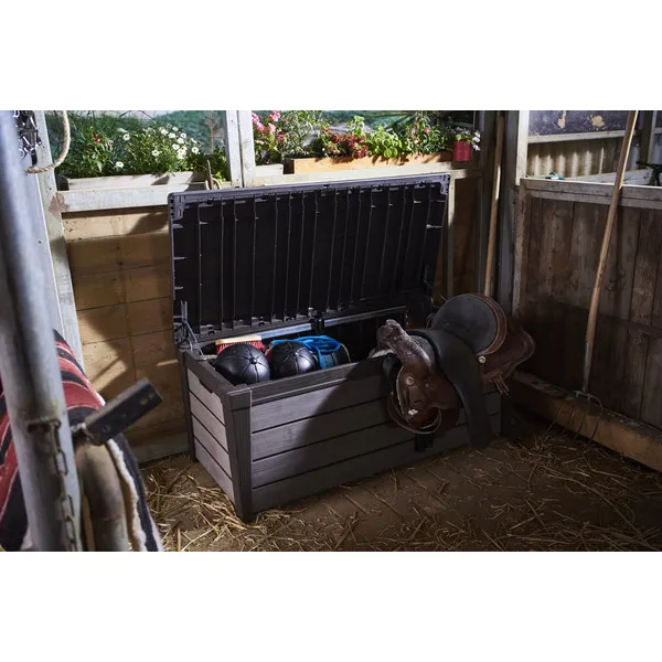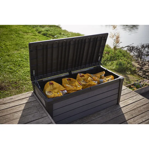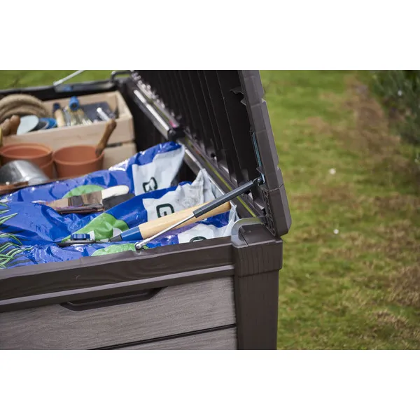 Ebben a tágas tárolóban, mint amilyen a 455L-es Brushwood, nem csak a kerti munkálatokhoz elengedhetetlen szerszámok, de a játékok és a szabadidős eszközök is elférnek. Legnagyobb előnye a rendkívül modern, de egyben letisztult formatervezés és az eredeti fára hajazó „wood look” felület kialakítás. A láda kinézete megtévesztően hasonlít a természetes fából készült tárolóra. A termék ellenáll a kedvezőtlen időjárási feltételeknek, könnyű tisztán tartani.