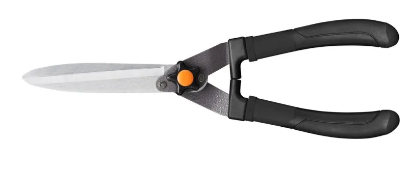 Díszfák és sövények metszéséhez és formára vágásához. SoftGrip borítású markolat a kényelmes fogásért . A pengék feszítése a középsõ csavarral a munka jellegéhez igazítható. A rugós erõátviteli mechanizmus a pengék fokozatos nyitása révén megkönnyíti a vágást. 111090