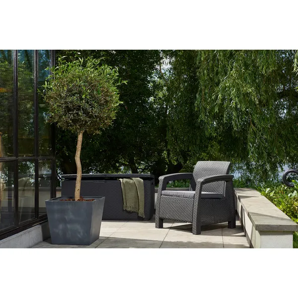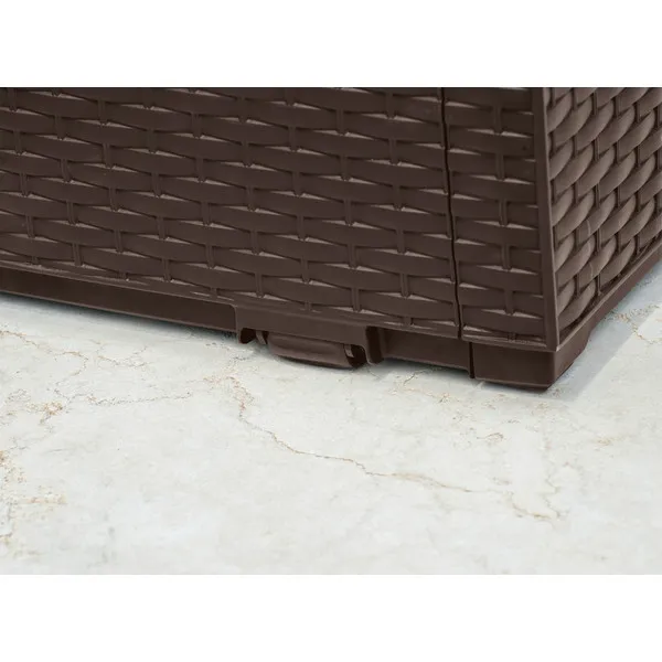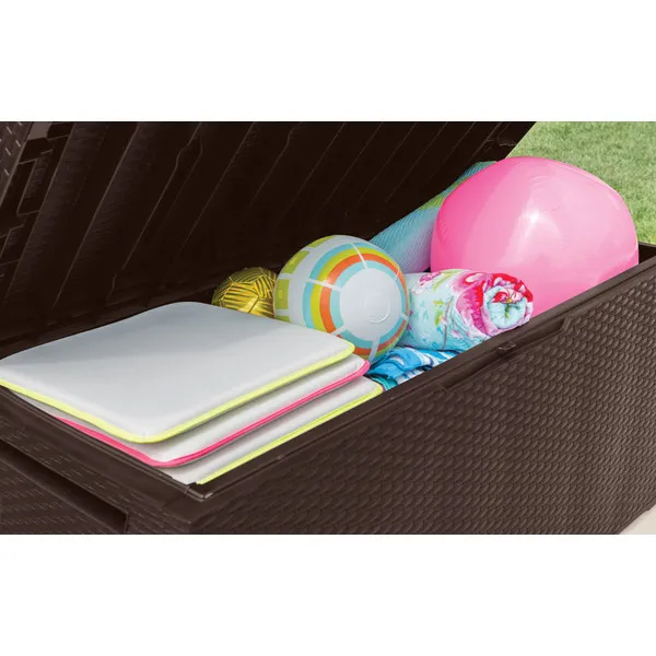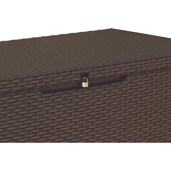 A 270L-es Capri tárolót a természetes rattan fonás inspirálta, időtálló formatervezése mindenki tetszését elnyeri, aki stílusos kertben gondolkozik. A kedvezőtlen időjárási feltételeknek ellenálló magas minőségű műanyag rendkívül tartós és garantálja a kerti szerszámok, játékok és egyéb kerti tartozékok biztonságos tárolását.