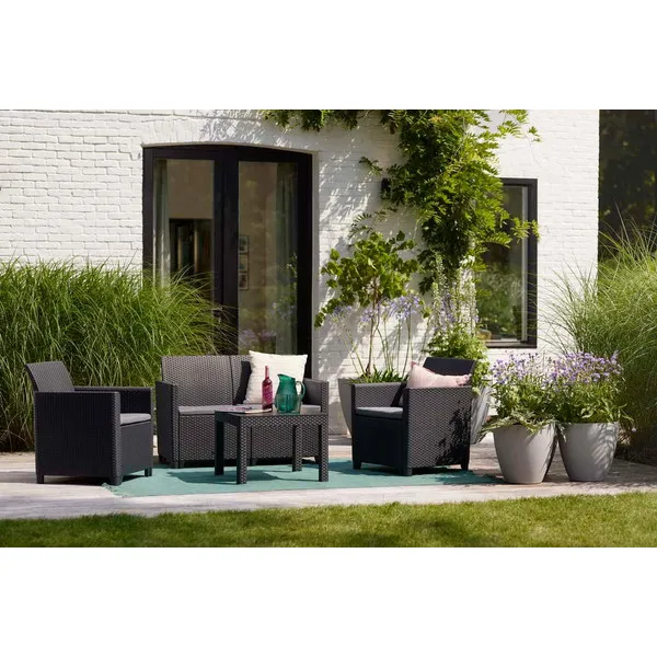 Alakítsd át a teraszod, erkélyed vagy kerted a Keter kényelmes Claire bútor szettjével. A szetthez mellékelt párnák extra kényelmet nyújtanak a kikapcsolódás pillanataiban. A Claire szabadidő szett minden igényt kielégít, így a szabadban bárhol elhelyezve képes megfelelő kényelmet nyújtani. A termékek fenntartható, karbantartást nem igénylő, időjárásálló anyagokból készültek. Szerszámok használata nélkül összeszerelhetők, így a bútorok már 20 perccel az összerakás megkezdése után használhatók! Opcióként klasszikus Orlando, vagy tároló funkcióval rendelkező asztallal is kapható.