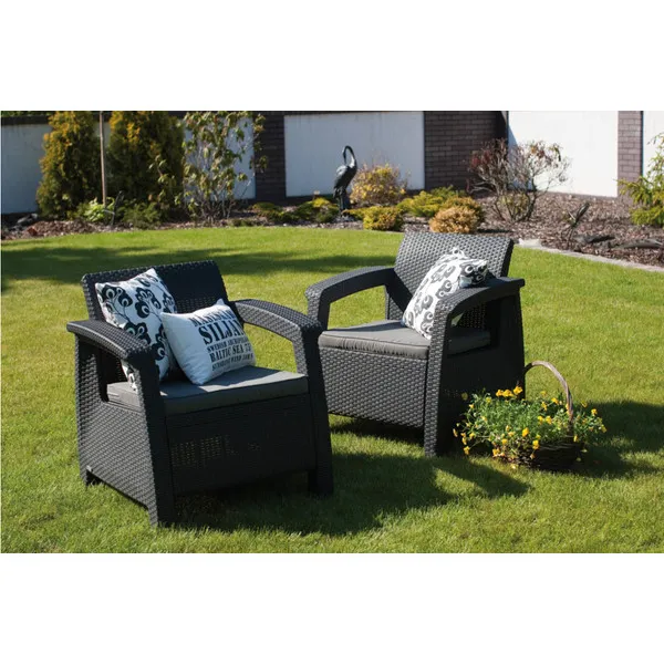 Elegancia és magas minőség dupla kivitelben. Két komfortos fotel puha párnákkal, melyek használhatók kisebb terek komplett berendezésére vagy kiegészítő elemként is. A Corfu Duo tökéletesen passzol a márkavonal kanapéihoz és asztalaihoz. Ennek köszönhetően szabadon módosítható a szett a saját igényektől és az adott tér berendezési lehetőségeitől függően.