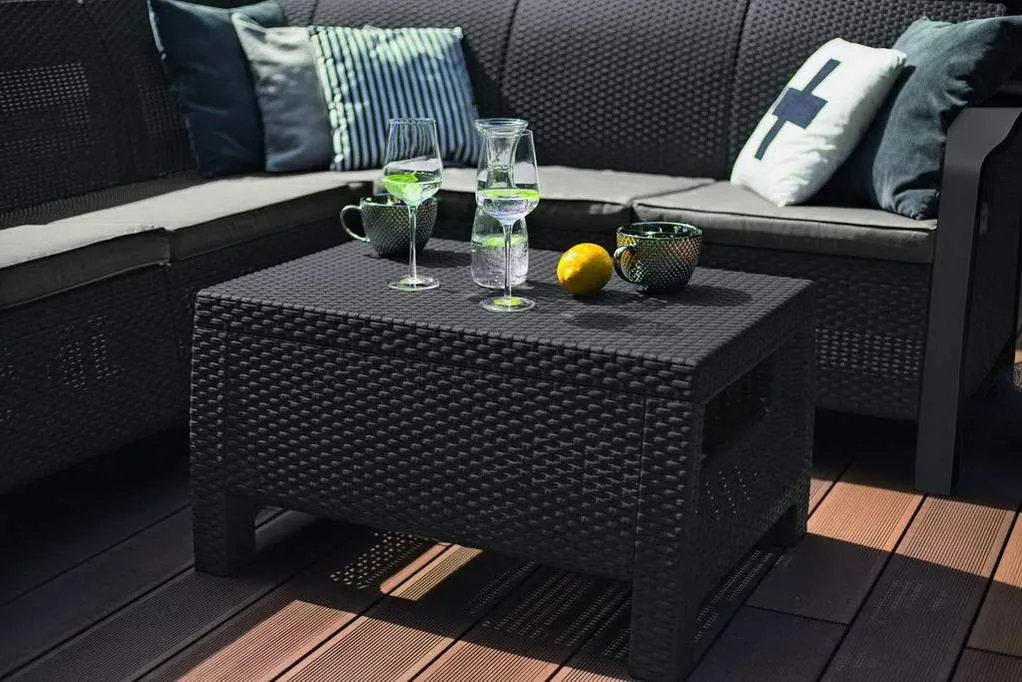 Relaxálhatsz mellette, vagy ráteheted a kedvenc boros poharad. A Corfu asztal egy stílusos kiegészítő, aminek köszönhetően még többet gyönyörködhetsz a kertedben. A bútor nádfonásra emlékeztető textúrája nagyszerűen néz ki, a tartós szerkezet pedig hosszú évekig szolgálni fog.