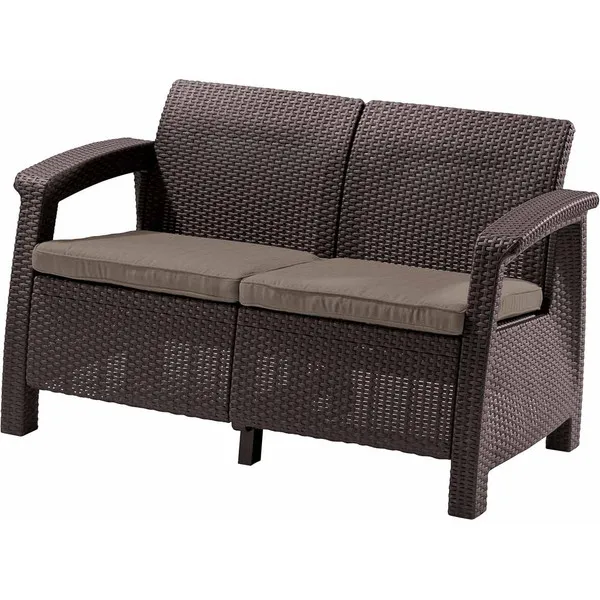 A Corfu termékvonal kétszemélyes, stílusos kanapéja a legnagyobb precizitással és körültekintéssel készült. A bútor tökéletes összhangban van a stílusos kollekció többi elemével – a fotelekkel és a háromszemélyes kanapéval, aminek köszönhetően szabadon variálható az elrendezésük. A termék kis mérete lehetővé teszi kis teraszok, patiok, erkélyek és kertek hangulatos berendezését. A tartós és ellenálló anyagból készült Corfu Love Seat kanapé nagyon könnyen összeszerelhető és tisztán tartható.
