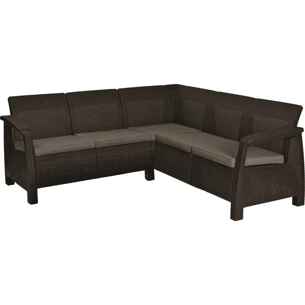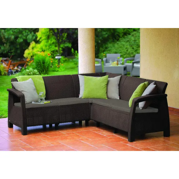A Corfu Relax egy elegáns sarokkanapé, tervezésekor az ergonomikus kialakítás fő szempont volt. Mindennel rendelkezik, amivel egy kényelmes kerti bútornak rendelkeznie kell. Ez a stílusos sarokbútor egy tartós, nádfonásra emlékeztető textúrájú műanyagból készült, mely ellenáll a szélsőséges időjárási körülményeknek. A kanapé könnyű, nem igényel karbantartást és könnyű összeszerelni.