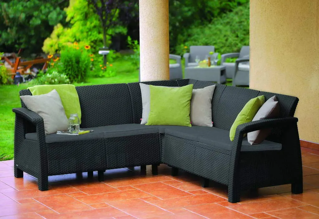 A Corfu Relax egy elegáns sarokkanapé, tervezésekor az ergonomikus kialakítás fő szempont volt. Mindennel rendelkezik, amivel egy kényelmes kerti bútornak rendelkeznie kell. Ez a stílusos sarokbútor egy tartós, nádfonásra emlékeztető textúrájú műanyagból készült, mely ellenáll a szélsőséges időjárási körülményeknek. A kanapé könnyű, nem igényel karbantartást és könnyű összeszerelni.
