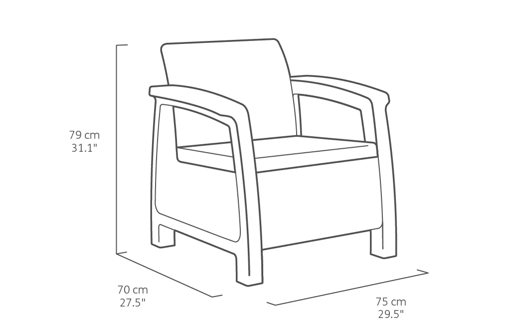 - Kényelmes ülőhelyek : A két fotel és a kávézóasztal tökéletes megoldás a nyugodt pihenéshez vagy egy kellemes beszélgetéshez a szabadban.