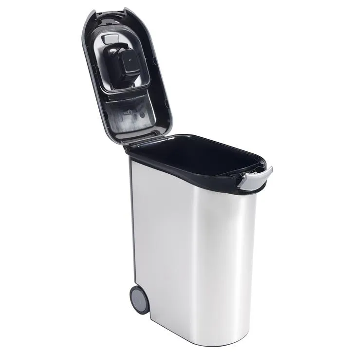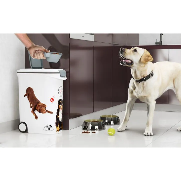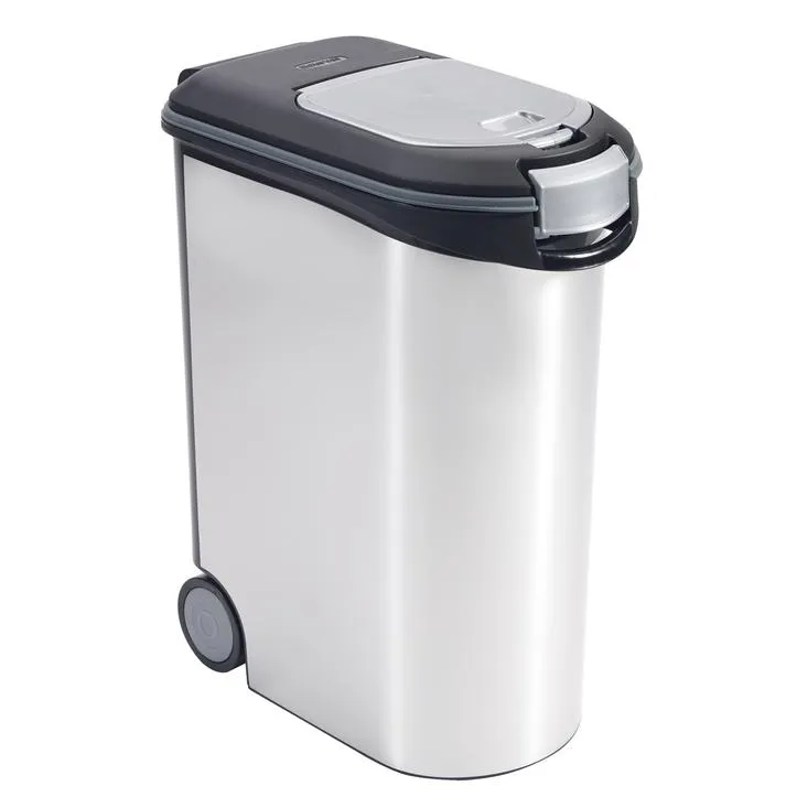Unod már, hogy a kiskedvenceid étele csúnya zacskókban van és minden etetés közben kiszóródik? A Curver táptartója segítségével sokkal könnyebb lesz a dolgod! Az előnyei között említhetők a hátsó kerekek és a fogantyú, a biztonságosan záródó fedél és a mérőkanál is, ezek segítségével mindig egyszerű lesz az etetés! A táptartó az állateledel formájától és sűrűségétől függően körülbelül 20 kg száraz tápot képes elraktározni. A kényelmesebb használat érdekében a levehető tetőn egy kisebb, felnyitható fedél is helyet kapott, ezen keresztül könnyedén adagolható az eledel. A fedél tömítésének köszönhetően nem kell félni attól, hogy kiszárad a benne tárolt étel!