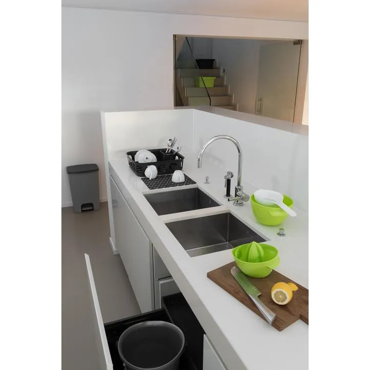 Az Essentials edényszárító elengedhetetlen termék minden háztartásban! Nagy méretének köszönhetően az egész család étkészlete gyorsan megszárad, akár 12 tányér is elfér rajta, fala pedig úgy lett kialakítva, hogy azon poharak is helyet kaphassanak.