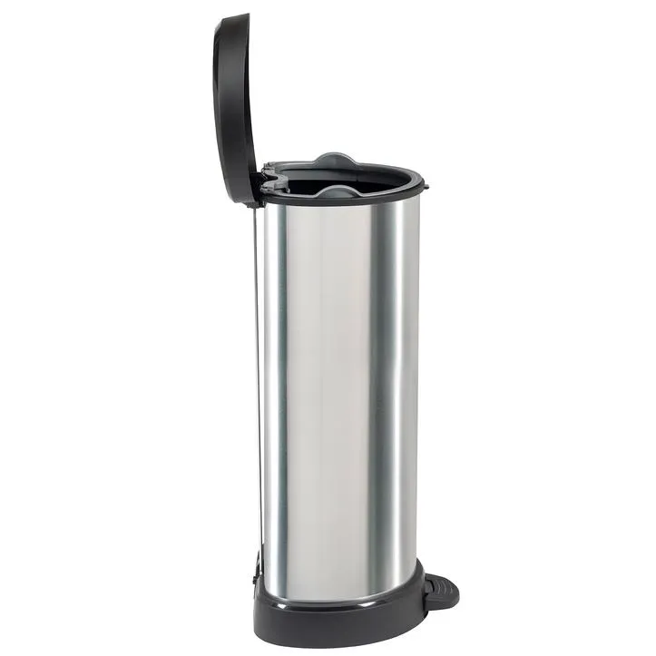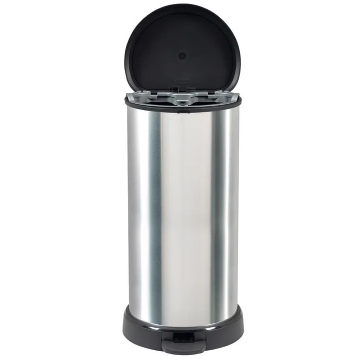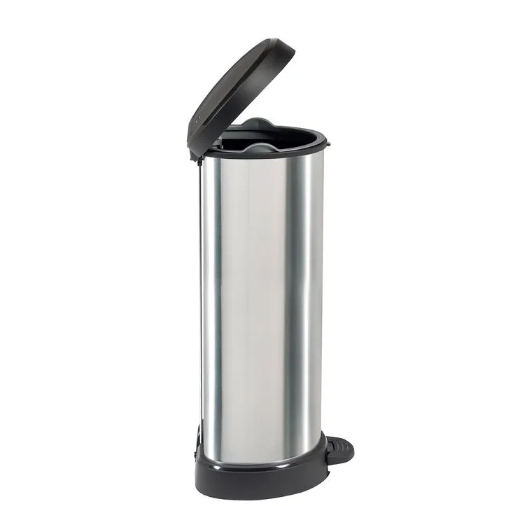 A 40 literes Deco Bin pedálos szemetes ideális választás egy kisebb család konyhájába, dolgozószobájába vagy fürdőszobájába. Kinézetre egy fém szemetesre hasonlít, viszont teljes egészében újrahasznosított műanyagból készül, így nem rozsdásodik és nem horpad be. Tisztítása rendkívül egyszerű, anyagán nem látszanak meg az ujjlenyomatok sem. A termék több méretben is elérhető az igények maximális kielégítése érdekében. D-formájának köszönhetően a szemetes könnyedén a fal mellé helyezhető, hátulja ugyanis teljesen egyenes.