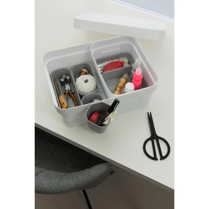Az Infinity termékcsalád elválasztói a moduláris kialakításuknak és multifunkcionalitásuknak köszönhetően tökéletes tárolási megoldások az otthonodba. A különböző méreteket kombinálva ideálisak sokféle használati tárgy és kiegészítő tárolására az irodában, a konyhában, vagy kár a fürdőszobában is. Tartós műanyagból készülnek, így ellenállnak a sérüléseknek és könnyen tisztíthatók. A termékek tervezése során a skandináv stílus volt a meghatározó, amely tökéletes kiegészítője bármely szobának! További előnyük, hogy 100%-ban újrahasznosított anyagból készülnek, így rendkívül környezettudatosak.