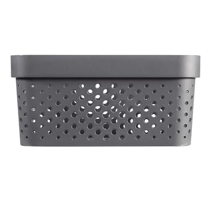 Az Infinity tárolódoboz egy moduláris és multifunkcionális tárolási megoldás az otthonodba. Kényelmes fogantyúinak köszönhetően könnyedén szállítható, így az ékszerek, konyhai és fürdőszobai kiegészítők, vagy a különböző papírok bármely szobában helyet kaphatnak. A legjobb minőségű műanyagból készül, így ellenálló és könnyen tisztítható. Az egyedi, lyukacsos mintázat skandináv stílust kölcsönöz neki, amely tökéletes kiegészítője bármely szobának! További előnye a terméknek, hogy 100%-ban újrahasznosított anyagból készül, így rendkívül környezettudatos.