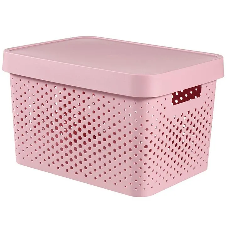 Az Infinity tárolódoboz egy moduláris és multifunkcionális tárolási megoldás az otthonodba. Ideális sok tárgy rendezett tárolására, melyek a doboz tetejének köszönhetően midig tiszták maradnak. Kényelmes fogantyúinak köszönhetően könnyedén szállítható, így a könyvek, cipők, játékok, vagy különböző papírok bármely szobában helyet kaphatnak. A legjobb minőségű műanyagból készül, így ellenálló és könnyen tisztítható. Az egyedi, lyukacsos mintázat skandináv stílust kölcsönöz neki, amely tökéletes kiegészítője bármely szobának! További előnye a terméknek, hogy 100%-ban újrahasznosított anyagból készül, így rendkívül környezettudatos.