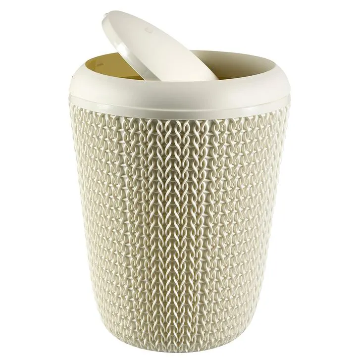 A Knit kerek szemetese tökéletesen illik a modern fürdőszobákba és irodákba, mindenki tetszését elnyeri, aki számára fontos a design és a praktikus használat ötvözése.Ez a 7 literes szemetes a legjobb minőségű, rendkívül tartós krém színű műanyagból készül. Külsejét szőtt mintázat inspirálta, mely rendkívül esztétikus hatást kelt, természetes színekkel kombinálva bármely beltérben jól mutat. Szorosan záródó tetjének köszönhetően a szemeteszsák és a benne tárolt szemét mindig láthatatlan marad. A kényelmesebb használat érdekében a tető 2 pozícióban nyitható. A szemeteskosár tökéletes kiegészítője a Knit termékcsalád többi termékének.