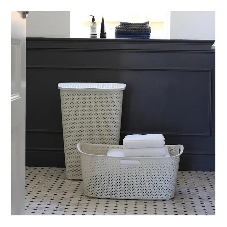 A My Style szennyestartó a fonott rattan hatású mintázat modern fürdőszobai értelmezése. Divatos és praktikus, 55 literes kapacitással rendelkezik, ám a tető ívelt kialakításának köszönhetően mégtöbb hellyel rendelkezik. Könnyen mozgatható a kényelmes fogantyúinak köszönhetően. Könnyű, strapabíró és könnyen tisztítható, ez a kosár az ideális megoldás bármelyik otthon számára! Ráadásul legalább 70%-ban újrahasznosított anyagból készült, így fenntartható megoldás a lakásod számára.