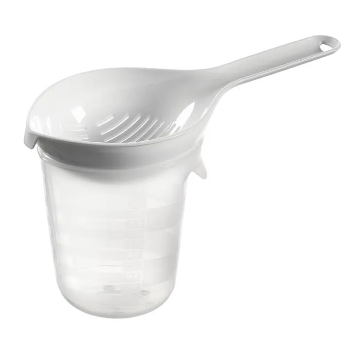 A modern stílusú nyeles szűrő a legjobb minőségű műanyagból készül, mely ellenáll a forró víznek és élelmiszerrel való érintkezéshez szükséges tanúsítvánnyal is rendelkezik. Tökéletes zöldségek és gyümölcsök mosásához, vagy akár az elkészült rizs leszűréséhez. Rendkívül tartós, kis súlya ellenére nagy teherbíró képességgel rendelkezik és mosogatógépben is tisztítható.
