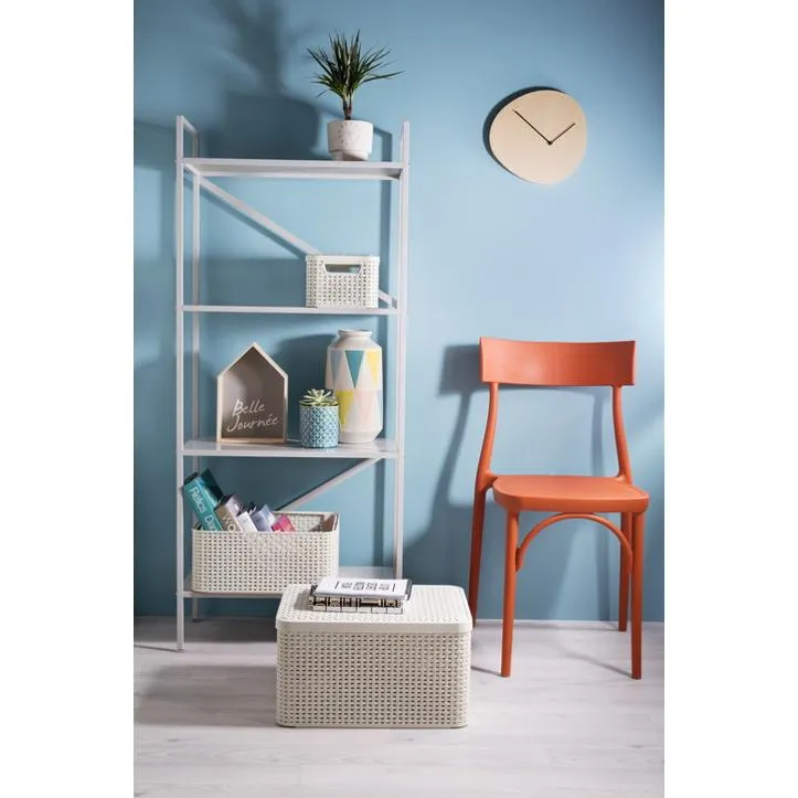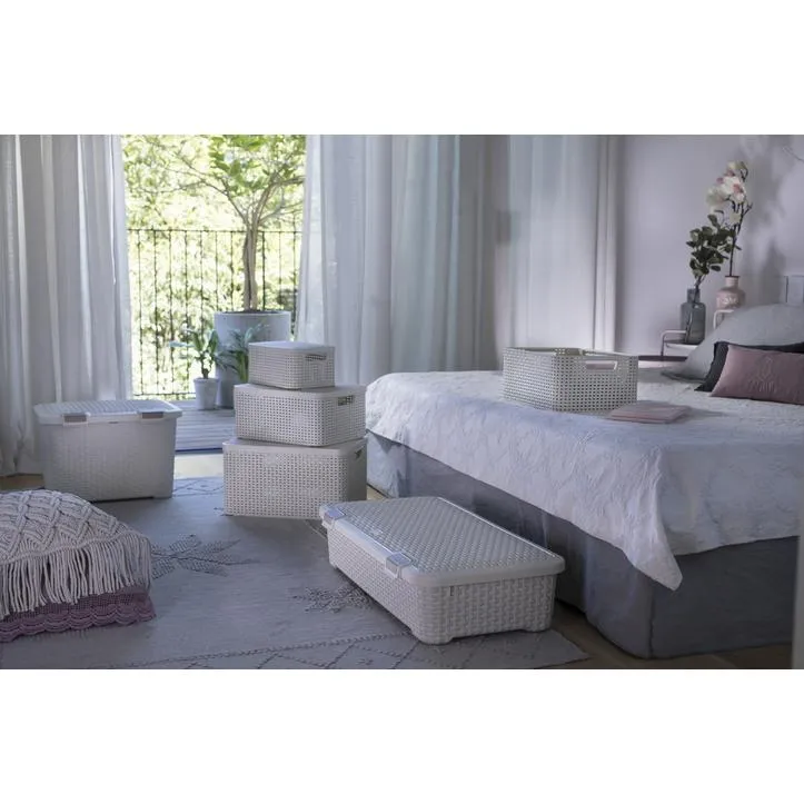 A Style termékcsalád l-es méretű, tetővel is rendelkező kosara egy univerzális tárolási megoldás, amely használható a nappaliban, konyhában, fürdőszobában, vagy a hálószobában is. Tökéletes megoldás kisebb termékek tárolására, például kulcsoknak, távirányítóknak, kozmetikumoknak, fűszereknek, vagy akár gyógyszereknek is. Textúrája rattan szövést imitál, amely exkluzív kinézetet kölcsönöz neki, így bármely belső térben szépen mutat. A termék rendelkezik tetővel is, amely megvédi a benne tárolt tárgyakat a portól, kényelmes fogantyúinak köszönhetően pedig könnyedén szállítható. A kosarak egymásra tehetők, így helytakarékosan tárolhatók. További előnye, hogy legalább 70%-ban újrahasznosított anyagból készül, ennek köszönhetően rendkívül környezetbarát.