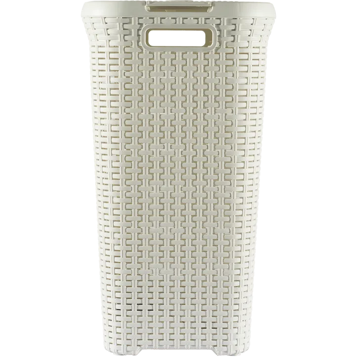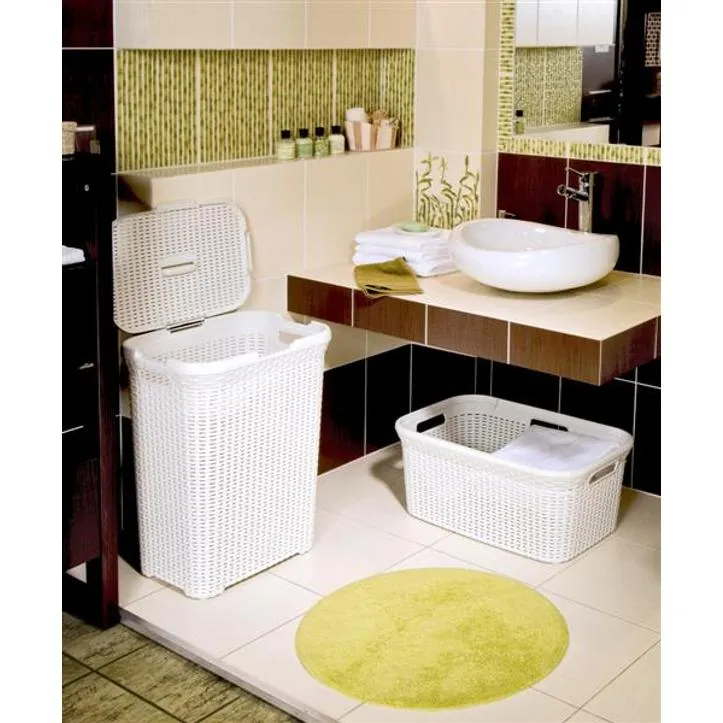 Ez az elegáns, 60 literes kapacitású szennyestartó nagy, könnyen hozzáférhető fedővel rendelkezik, ideális a család összes ruhájának tárolására és elrejtésére. A fedő kétféleképpen nyitható, ami lehetővé teszi, hogy a kosár tökéletesen alkalmazkodjon bármely helyiség elrendezéséhez. A szennyestartó rattan hatású dizájna nemcsak tartós, minimális karbantartást igénylő és könnyen tisztítható, hanem jó szellőzést is biztosít. Ez a kosár nemcsak szép, hanem fenntartható is, mivel legalább 70%-ban újrahasznosított anyagból készült.
