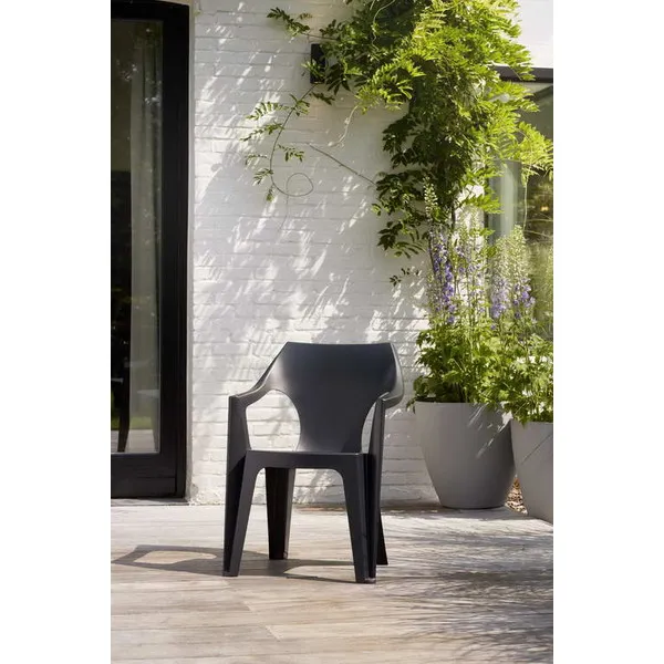A jellegzetes formájú, enyhén lekerekített háttámlával és áramvonalas kartámasszal felszerelt Dante szék a modern dizájn és a kényelem ötvözete. A gondosan megtervezett forma lehetővé teszi a székek egymásra helyezését, ami segít helyet megtakarítani és könnyebbé teszi a tárolásukat. A Dante széket az időjárás viszontagságaival, az UV sugárzással, valamint a sérülésekkel szembeni ellenállás jellemzi. Tisztítása egyszerű, elegendő hozzá csupán egy mosószeres vízbe áztatott puha törlőkendő.