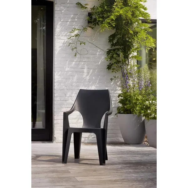 A Dante szék a magas háttámlájával a modern dizájnt és a maximális kényelmet egyesíti. Egy napsütéses napon az enyhén lekerekített háttámla és az áramvonalas kartámaszok abszolút kényelmet és felhőtlen pihenést garantálnak. A gondosan megtervezett forma lehetővé teszi a székek egymásra helyezését, ami segít helyet megtakarítani és könnyebbé teszi a tárolásukat. A szék széles színválasztékban kapható, tisztítása pedig nagyon egyszerű, elegendő hozzá csupán egy mosószeres vízbe áztatott puha törlőkendő.