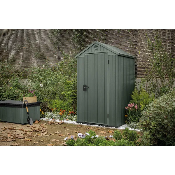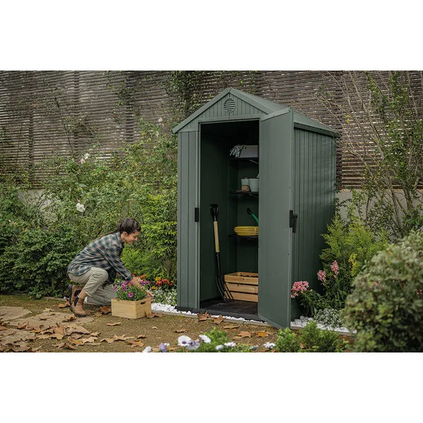A DARWIN 4×4 szerszámos ház praktikus, funkcionális és optimális méretű megoldás mindazok számára, akik egyszerűen összeszerelhető és megbízható tárolóhelyet keresnek kertjükbe. A 16 mm-es dupla rétegű oldalfalak növelik a szerkezet szilárdságát és stabilitását, így a ház tartósan ellenáll a kedvezőtlen időjárási viszonyoknak és az UV sugárzásnak.