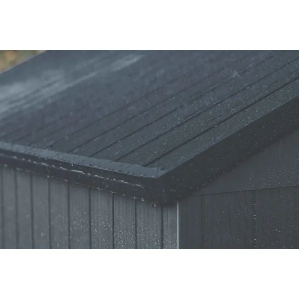 A DARWIN 6×4 szerszámos ház praktikus, funkcionális és optimális méretű megoldás mindazok számára, akik egyszerűen összeszerelhető és megbízható tárolóhelyet keresnek kertjükbe. A 16 mm-es dupla rétegű oldalfalak növelik a szerkezet szilárdságát és stabilitását, így a ház tartósan ellenáll a kedvezőtlen időjárási viszonyoknak és az UV sugárzásnak.