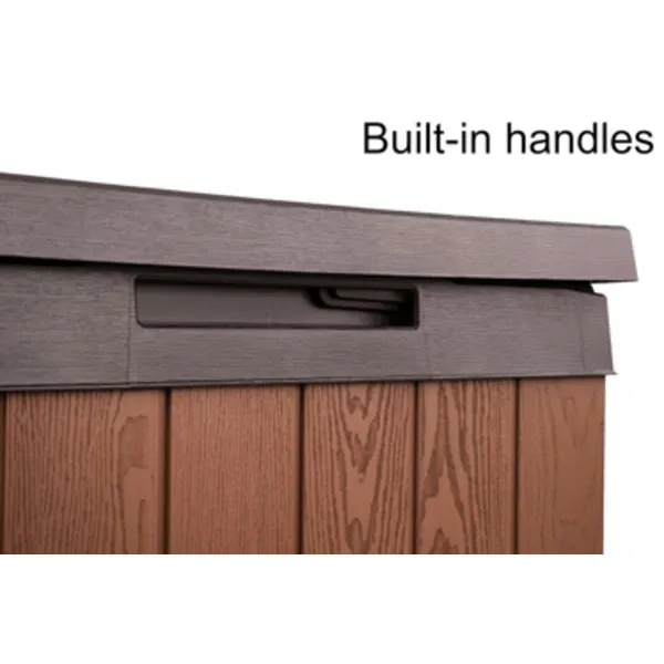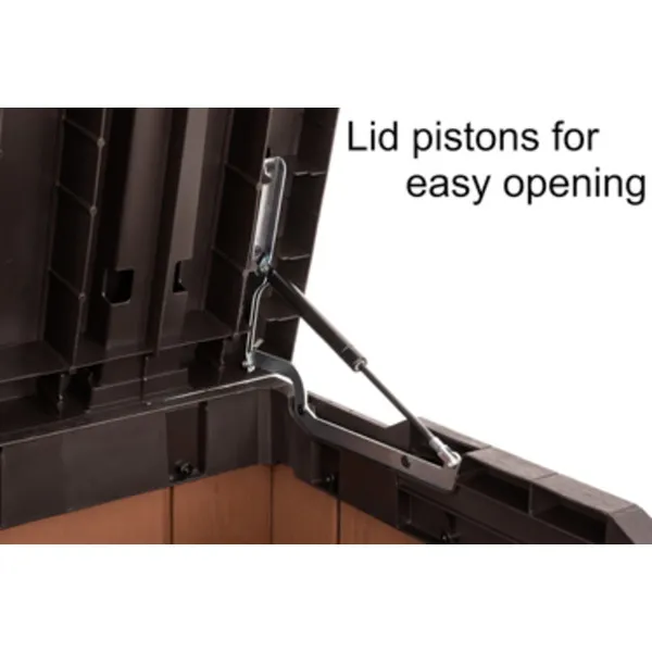 A Darwin kerti tároló az erős kialakítást ötvözi az elegáns megjelenéssel. Innovatív EVOTECH™ alapanyagból készül, amely ellenáll az időjárási viszontagságoknak és az UV-sugárzásnak. A fához hasonló rusztikus textúra és a stílusos, kétszínű keret fokozza a termék esztétikai előnyeit. Jelentős tároló kapacitásának köszönhetően kényelmesen elférnek benne a kültéri párnák és egyéb kiegészítők, így a terasz, az udvar, vagy a kert mindig rendben tartható. A fedélnyitást megkönnyítő mechanizmus a termék vitathatatlan előnye, fedele zárható. trapabíró kialakításának köszönhetően a tároló láda két személy ülőhelyeként is használható. Három méretben kapható: 380L, 570L, 622L.