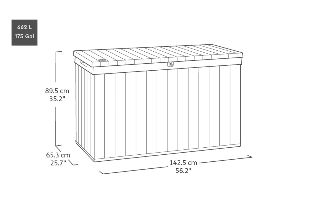A Darwin kerti tároló az erős kialakítást ötvözi az elegáns megjelenéssel. Innovatív EVOTECH™ alapanyagból készül, amely ellenáll az időjárási viszontagságoknak és az UV-sugárzásnak. A fához hasonló rusztikus textúra és a stílusos, kétszínű keret fokozza a termék esztétikai előnyeit. Jelentős tároló kapacitásának köszönhetően kényelmesen elférnek benne a kültéri párnák és egyéb kiegészítők, így a terasz, az udvar, vagy a kert mindig rendben tartható. A fedélnyitást megkönnyítő mechanizmus a termék vitathatatlan előnye, fedele zárható. trapabíró kialakításának köszönhetően a tároló láda két személy ülőhelyeként is használható. Három méretben kapható: 380L, 570L, 622L.