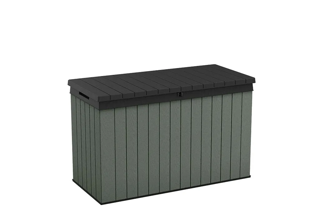A Darwin kerti tároló az erős kialakítást ötvözi az elegáns megjelenéssel. Innovatív EVOTECH™ alapanyagból készül, amely ellenáll az időjárási viszontagságoknak és az UV-sugárzásnak. A fához hasonló rusztikus textúra és a stílusos, kétszínű keret fokozza a termék esztétikai előnyeit. Jelentős tároló kapacitásának köszönhetően kényelmesen elférnek benne a kültéri párnák és egyéb kiegészítők, így a terasz, az udvar, vagy a kert mindig rendben tartható. A fedélnyitást megkönnyítő mechanizmus a termék vitathatatlan előnye, fedele zárható. trapabíró kialakításának köszönhetően a tároló láda két személy ülőhelyeként is használható. Három méretben kapható: 380L, 570L, 622L.