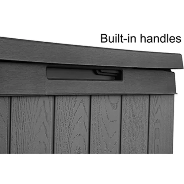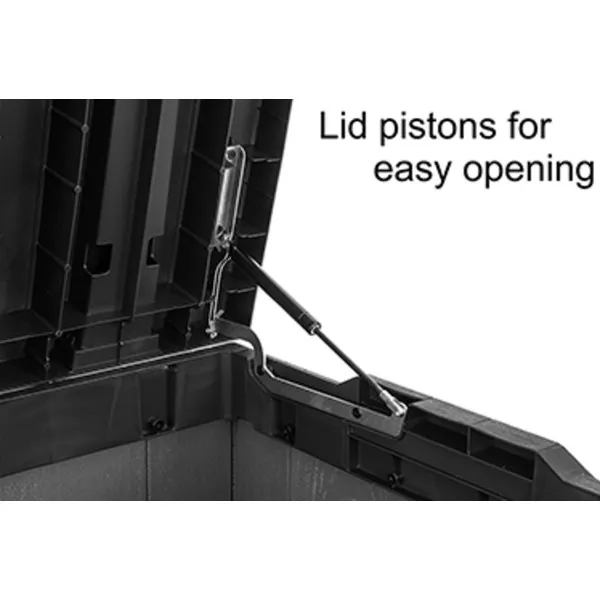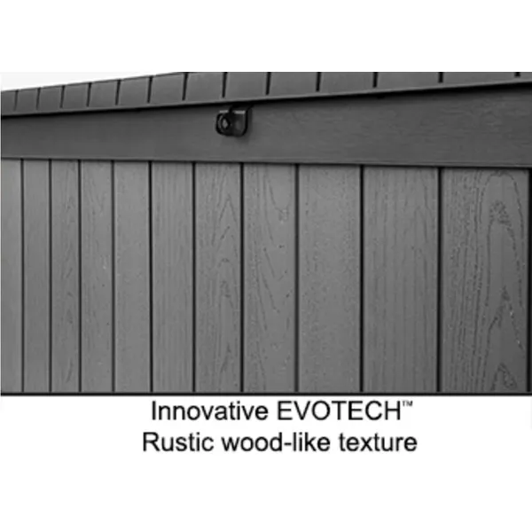 A Darwin kerti tároló az erős kialakítást ötvözi az elegáns megjelenéssel. Innovatív EVOTECH™ alapanyagból készül, amely ellenáll az időjárási viszontagságoknak és az UV-sugárzásnak. A fához hasonló rusztikus textúra és a stílusos, kétszínű keret fokozza a termék esztétikai előnyeit. Jelentős tároló kapacitásának köszönhetően kényelmesen elférnek benne a kültéri párnák és egyéb kiegészítők, így a terasz, az udvar, vagy a kert mindig rendben tartható. A fedélnyitást megkönnyítő mechanizmus a termék vitathatatlan előnye, fedele zárható. trapabíró kialakításának köszönhetően a tároló láda két személy ülőhelyeként is használható. Három méretben kapható: 380L, 570L, 622L.