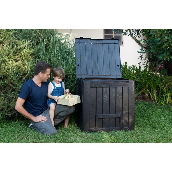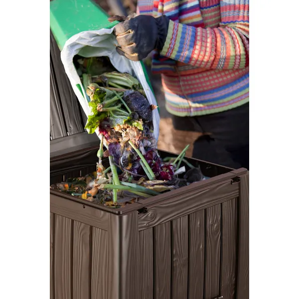 A 340L kapacitású Deco Composter ideális komposztáló a környezetbarát felhasználók számára. Előnyei közé tartozik a nagyon egyszerű összeszerelés és az egyszerű használat. A tartós fedél légzáró légmentesen záródik, hogy megelőzze a kellemetlen szagok kijutását. A gyártáshoz használt kiváló minőségű műanyag garancia a hosszú élettartamra.