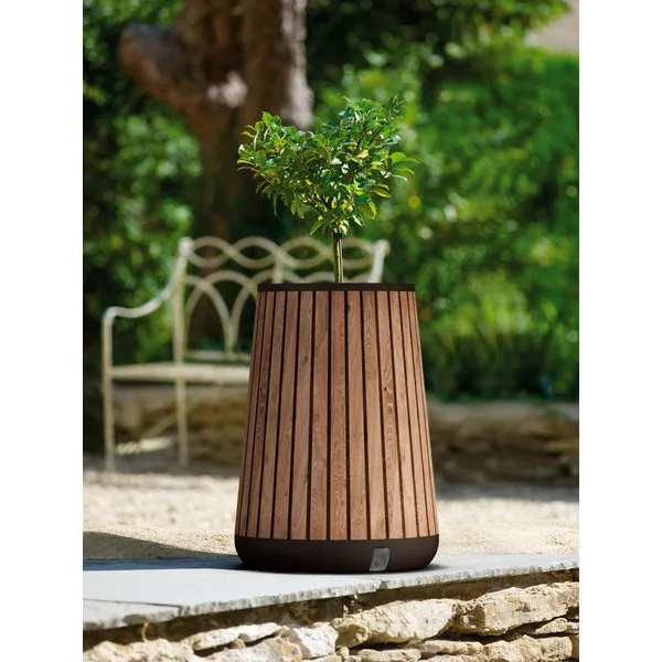 A Deco henger alakú magasított műanyag virágláda a tökéletes megoldás mindazok számára, akik egy praktikus, modern és tartós virágládát keresnek növényeik számára. A szabadalmaztatott Decocoat technológiának köszönhetően ez a kaspó egyszerre lenyűgözően esztétikus és rendkívül tartós. Az egyik legforradalmibb tulajdonsága a beépített, intelligens öntözőrendszer, amely mindig pontosan annyi vizet biztosít növényeid számára, amennyire az optimális fejlődéshez és egészséges megjelenéshez szükségük van.
