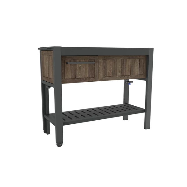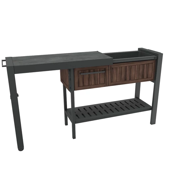 Modern, kompakt kialakítása zökkenőmentesen illeszkedik bármilyen térbe, teraszra vagy kertbe, a rejtett kerekek pedig könnyű mozgatást biztosítanak. A praktikus felső fiók és a belső tárolórekesz kényelmes tárolást kínál a legszükségesebb dolgok számára, biztosítva, hogy minden mindig kéznél legyen.