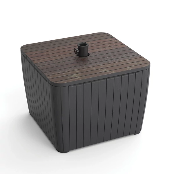 A Luzon egy praktikus asztal, amelyet a mindennapi kényelem szem előtt tartásával terveztek. A legfeljebb 3 méter átmérőjű napernyőhöz kialakított tartó, valamint a beépített, vízzel tölthető, 40 literes talp stabilitást biztosít használat közben, így az asztal kiválóan illik kerti összeállításokba.
