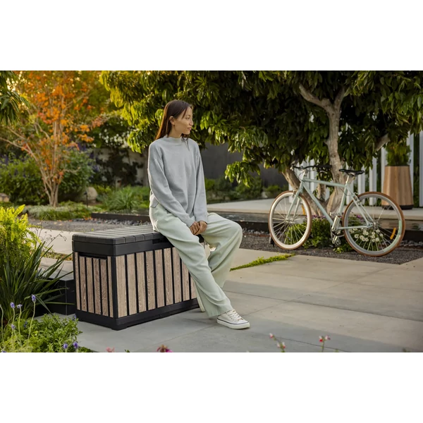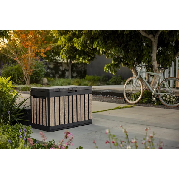 A Kentwood 190 literes tárolódoboz ötvözi a funkcionalitást, a tartósságot és az esztétikát, így ideális a mindennapi kültéri használatra.