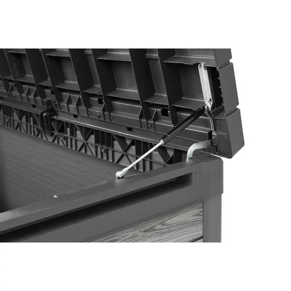 A praktikus, működtetőkkel ellátott rendszernek köszönhetően a fedél nyitása és zárása sima és kényelmes. A 380 literes űrtartalom bőséges helyet biztosít kerti kiegészítők, párnák és egyéb tárgyak tárolására. Ezenkívül a láda lakattal (nem tartozék) zárható a még nagyobb biztonság érdekében.